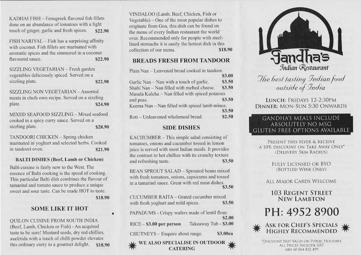 Welcome to Gandhas Indian Restaurant, the crown jewel of New Lambton, proudly standing as Newcastle's first Indian dining establishment. Nestled at 103 Regent St, this charming spot has been a local favorite for 38 years, attracting patrons seeking authentic Indian flavors.